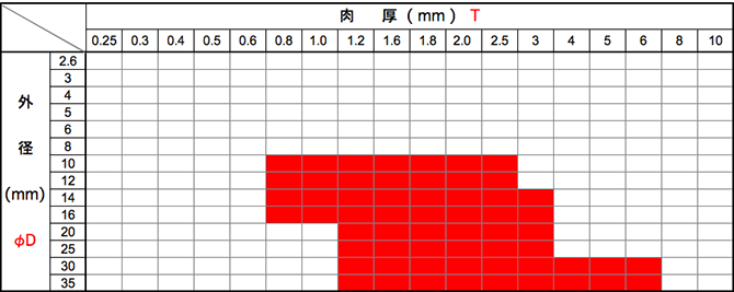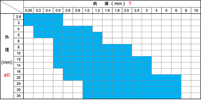 ※上表製造範囲外のサイズの製造可否につきましては、弊社へ御問合せ願います。